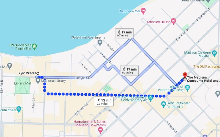 The Concourse is located on the Capitol Square, just a 15 min walk (0.7 mi) from the Pyle Center.